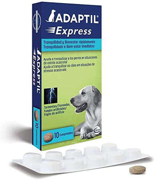 Adaptil comprimidos es un nutracéutico indicado para el alivio rápido del estrés en perros. Contiene una mezcla única de aminoácidos, GABA y complejo vitamínico B, que ayuda a relajar a los perros en situaciones de estrés ocasionales (ruidos, petardos, tormentas, viajes, visitas al veterinario). No contiene feromonas.