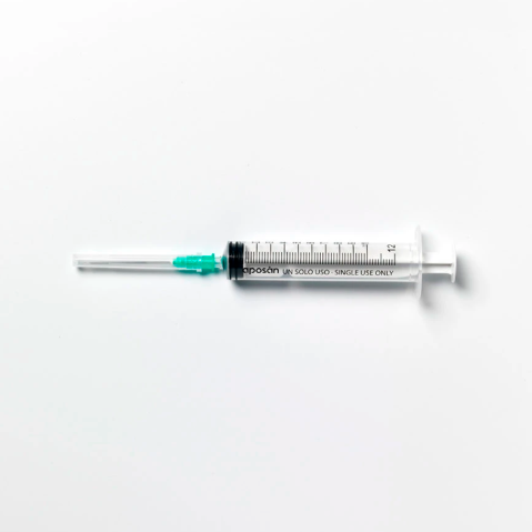 Jeringuilla estéril de un solo uso con aguja incorporada, ideal para uso médico y sanitario. Disponible en tres capacidades (2,5 ml, 5 ml y 10 ml), permite una administración precisa de medicamentos inyectables. Jeringuilla estéril y de un solo uso, ideal para usos médicos, veterinarios o de cuidado personal. Fabricada por Aposán, marca de confianza en productos sanitarios, está disponible en tres capacidades: 2,5 ml, 5 ml y 10 ml, para adaptarse a diferentes necesidades de administración de líquidos.