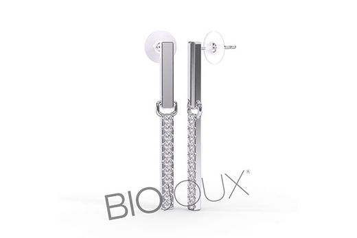Pendientes Biojoux Gorgona de 40 mm con diseño alargado en acabado plateado y barra frontal con circonitas incrustadas. Fabricados en acero quirúrgico 316L, son hipoalergénicos y seguros para pieles sensibles, perfectos para un estilo moderno y elegante.