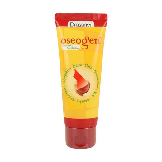 - Oseogen ungüento balsámico presenta en su composición la sinergia de varios ingredientes como la condroitina, glucosamina, metilsufonilmetano (MSM), harpagófito, ruscus , consuelda y arnica. Además se ve incrementado por el efecto de sustancias como el clavo y el capsicum, que proporcionan al producto un ligero efecto calor.
