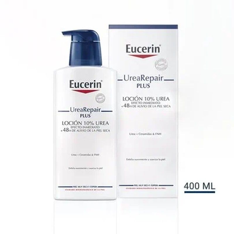 Eucerin UreaRepair PLUS Loción 10% Urea proporciona a la piel extremadamente seca, con picor y escamosa el cuidado diario que necesita. La fórmula contiene Urea, Ceramida y otros factores naturales de hidratación (NMF) que mantienen la hidratación y restauran la barrera protectora natural de la piel para evitar más pérdidas de hidratación. Eucerin UreaRepair PLUS Loción 10% Urea tiene la capacidad clínicamente probada de aportar un alivio inmediato y una hidratación intensa, retrasando la aparición de síntomas de piel muy seca y extremadamente seca incluso durante 48 h. La piel se siente suave y flexible. Adecuada para quienes sufren xerosis, diabetes, psoriasis y queratosis pilaris (piel de gallina). También como cuidado complementario.