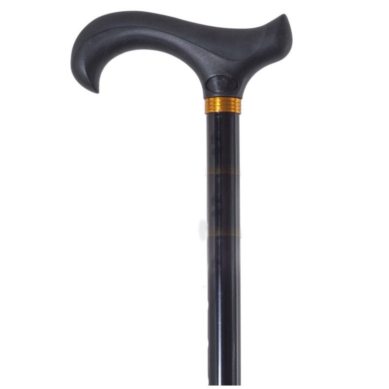 Muletilla extensible negro con puño de tacto suave | R. 452. Esta muletilla extensible está fabricada en aluminio. El tubo es de color negro y la empuñadura es de tacto suave. El bastón es una ayuda técnica para la movilidad. Sirve para facilitar la marcha, aumentando la estabilidad, y disminuir el cansancio o carga al caminar sobre las extremidades inferiores, ya que permite descargar el peso de la pierna afectada.