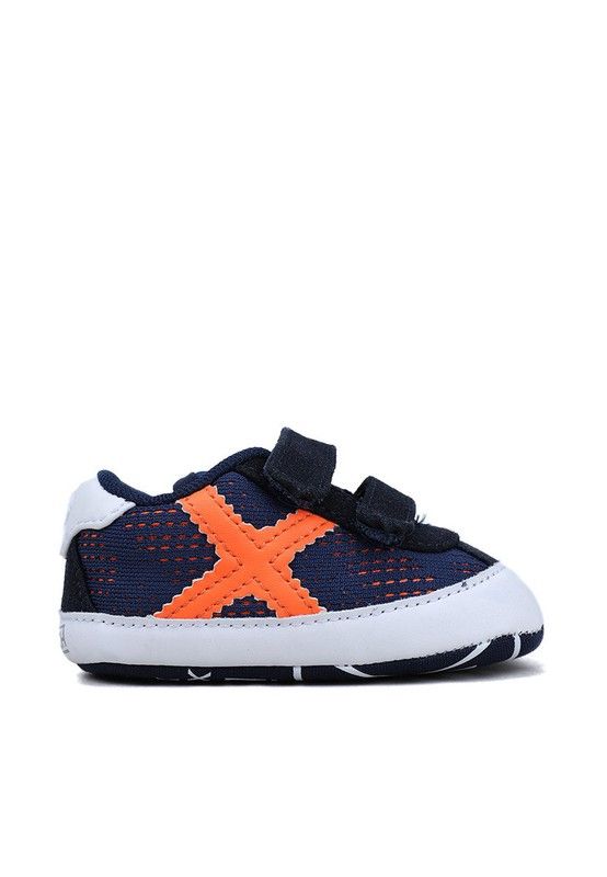 Elaborado con microfibra azul con acabados en sintético naranja y azul. La marca Munich es reconocida por su calidad y estilo en la fabricación de calzado deportivo, y estas zapatillas no son la excepción. Zapatilla deportiva para bebé de MUNICH, con cierres de velcro y logo de la marca en los laterales y en la lengüeta.