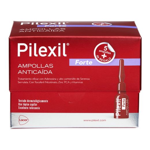 Pilexil Forte Ampollas Anticaída es la nueva formulación en ampollas que ha desarrollado Lacer para frenar la caída del cabello en situaciones de caída intensa o abundante del cabello. La nueva fórmula combina Adenosina y un alto contenido en Serenoa serrulata. Ambos ingredientes activos actúan directamente prolongando la fase de crecimiento del cabello. Contiene además Tocoferil Nicotinato, Zinc PCA, y vitaminas, en su mayoría, del grupo B. Pilexil Forte Ampollas Anticaída está especialmente recomendado en personas con una caída abundante, intensa y excesiva del cabello.