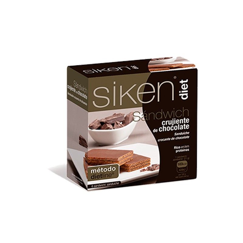 El sandwich crujiente de chocolate Siken es ideal para disfrutar de un rico picoteo entre horas bajo en calorías. Te ayuda a controlar tu peso ya que es rico en proteínas y bajo en azúcares y grasa.