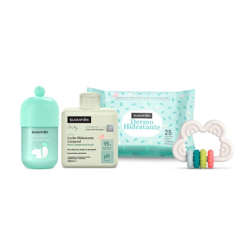El Suavinex Baby Care Organiser es un set completo para el cuidado diario del bebé. Incluye una leche hidratante corporal, una colonia infantil, toallitas dermohidratantes y un mordedor didáctico, todo presentado en un elegante organizador de regalo. Suavinex ofrece productos de alta calidad diseñados para respetar la delicada piel del bebé, proporcionando hidratación, frescura y alivio en el proceso de dentición.