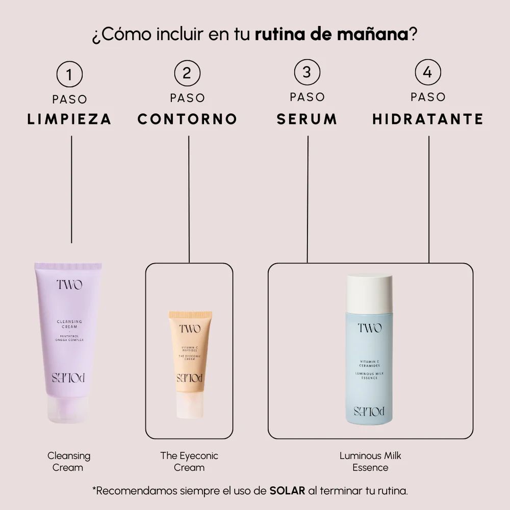 Aplica una pequeña cantidad —equivalente a un granito de arroz para ambos ojos— sobre la piel limpia y seca, en tu rutina de día.